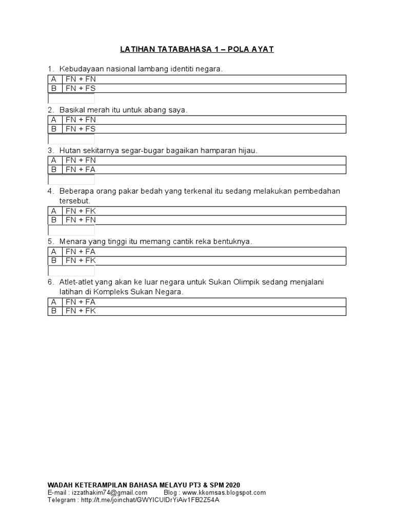 Latihan Pola Ayat Pt3 Dengan Jawapan Contoh Soalan Pola Ayat Pt3 Selangor Q Saya Minta. Bagi setiap soalan ramalan pilih satu jawapan sahaja. Pola Ayat Other contents.