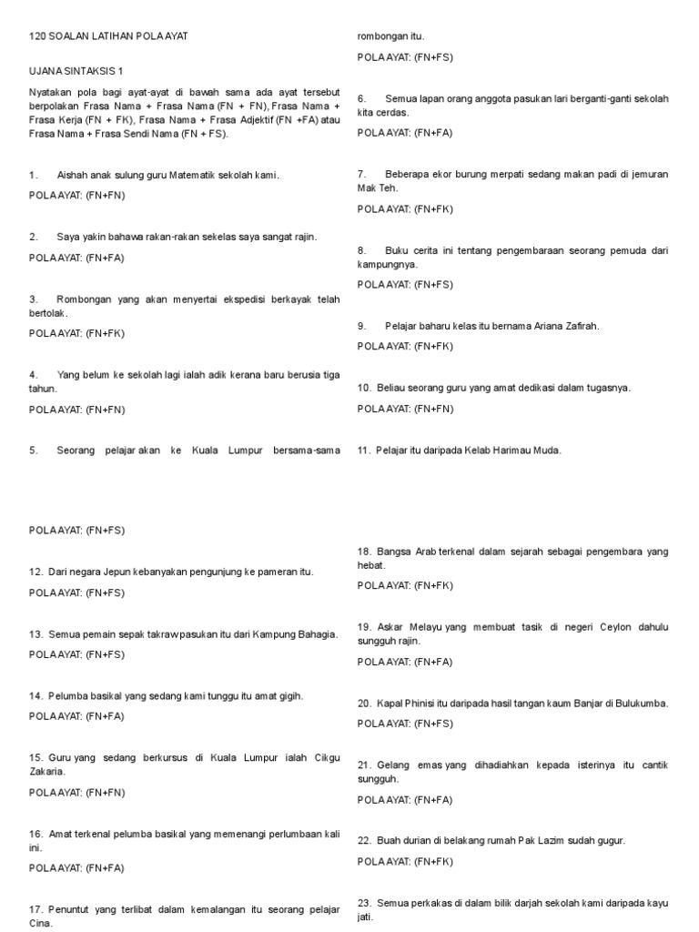 120 Soalan Latihan Pola Ayat. 120 Soalan Latihan Pola Ayat.
